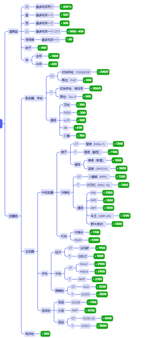 击杀奖励:使用不同武器击杀获得的奖金不同(见武器价格表),这是平衡经济局武器选择的关键。