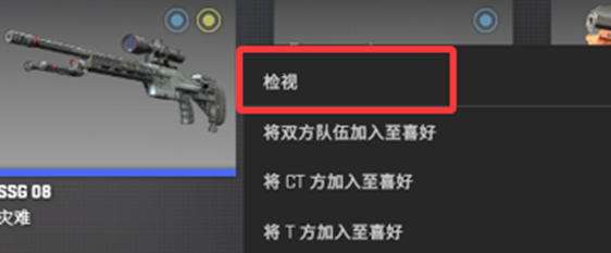 使用鼠标对某一武器组件进行右键点击,会弹出一些功能,在这些功能中包含了检视部分,使用左键点击检视。
